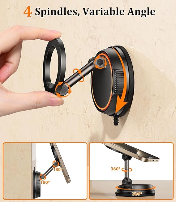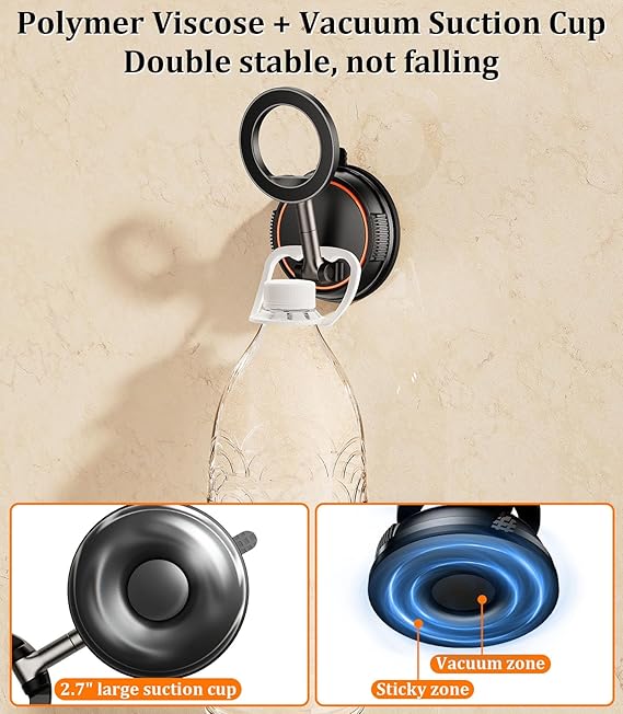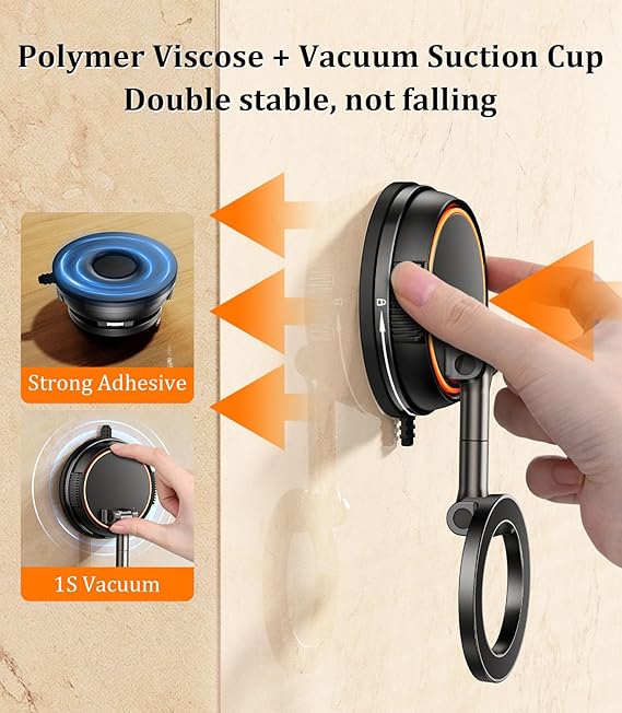 - 【Vacuum Suction Cup + PU Adhesive】 The magnetic suction cup phone mount is double-fixed with vacuum suction cups and PU adhesive for greater solidity and longer lasting suction. The PU adhesive by 2025 latest technology is melt-resistant so no residue left. Easily install and remove, reuse after rinse & air-dry
