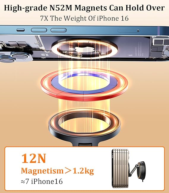 - 【Compatible with All Phones】 The magnetic wall suction cup mount is compatible with iPhone 16 15 14 13 12 series and Magnetic case directly, for other phones and non-Magnetic phone cases, you will need to stick the included adhesive magnetic metal ring on the back of your phone case