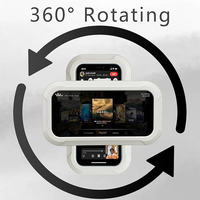 Shower Phone Holder Waterproof, 360° Rotation Mobile Phone Stand, Wall Mounted Anti-Fog Cellphone Case Accessories Universal for Bathroom Bathtub Kitchen for up to 7 Inch Cellphone