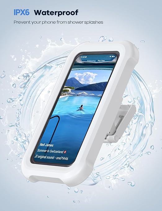 - 2-in-1 Wall Mount or Bathtub Stand : Made of high quality ABS materials and featured with an internal waterproof circle and the clasp design, this waterproof shower phone mount is IPx6 Waterproof and impervious to shower splashes and water vapour, helping you enjoy watching Youtube, Netflix, Tiktok, listening to music while showering. !!!Note: Please do not completely immerse the phone case holder into water