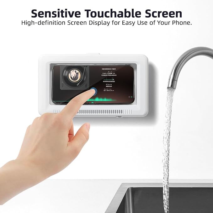 - Sensitive and Touchable: The bathroom phone holder is designed with a high-definition visual window, which is sensitive to touch and can easily slide to use the mobile phone without affecting answering calls and replying messages. You can also switch videos, music, etc. at any time, and enjoy the shower moment easily.