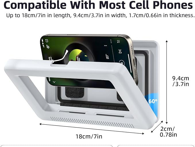 - Compatible with Most Mobile Phones: This shower phone holder can hold phones up to 7in long, 3.7in wide, and 0.66in thick, and is suitable for most mobile phone models on the market. The built-in sponge can keep the mobile phone from shaking, which is very suitable for using the mobile phone in the shower or bath. (Please Note: Do not sink it directly into the water)